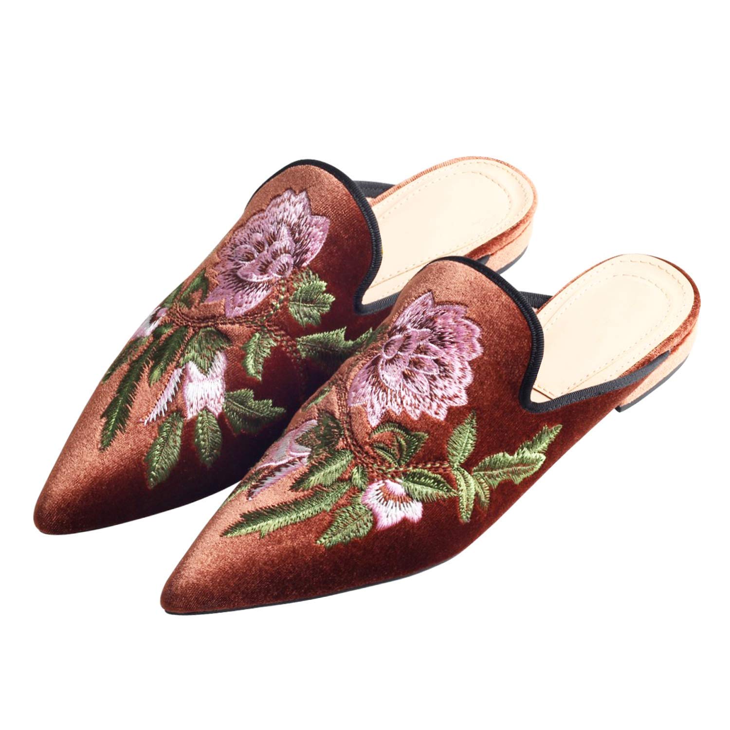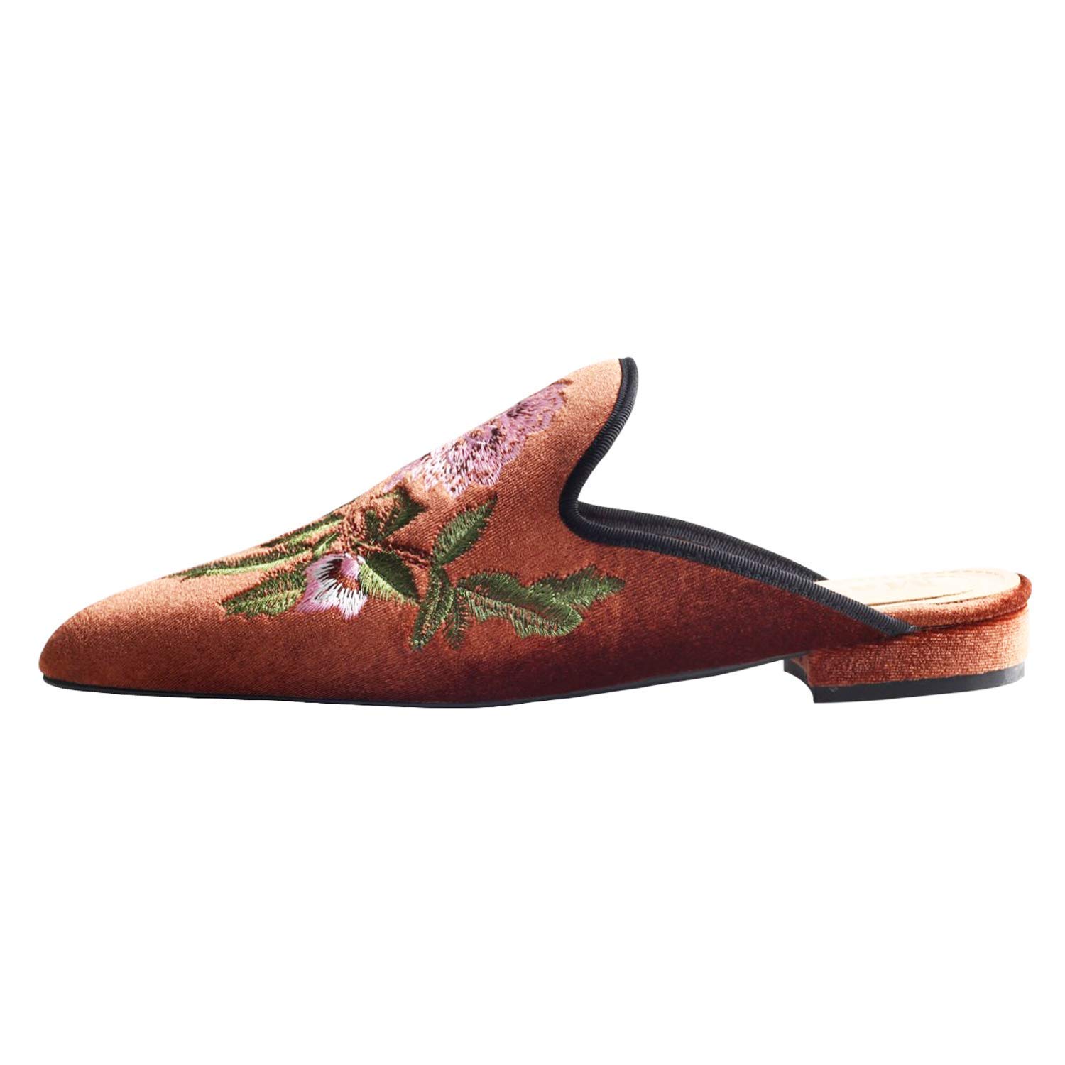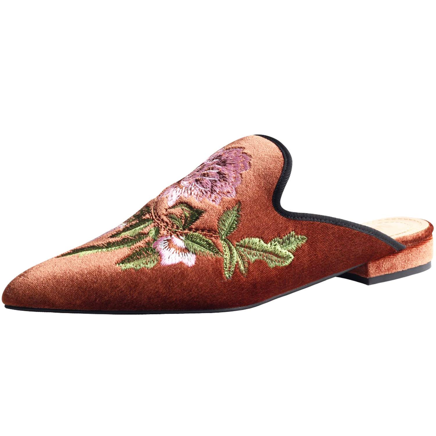DELICATE EMBROIDERY:Palace retro embroidered pointed Toe slippers upper using velvet fabric with high-tech embroidery,plant flowers come alive with vivid colors,fine workmanship is also very wild on the clothing,whetherit is dress or pants.